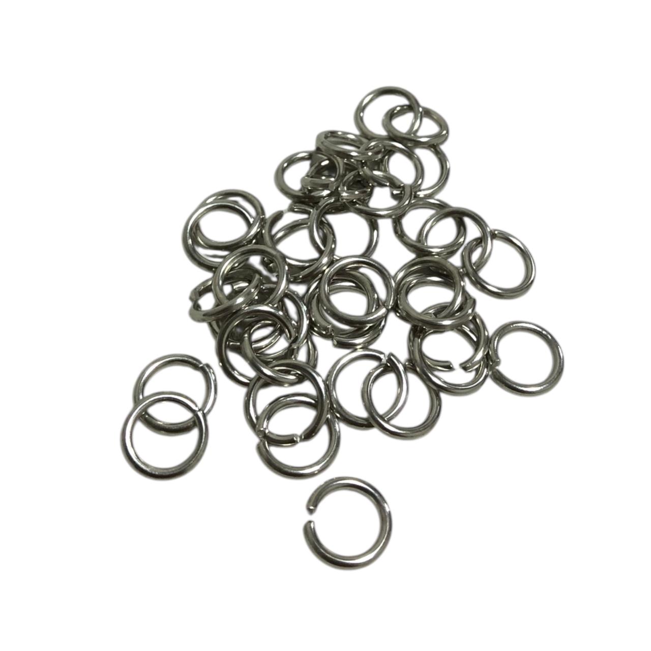 argola 8mm em latão com banho níquel é essencial para unir componentes de bijuterias com segurança e um ótimo acabamento. Com excelente resistência e brilho prateado, ela é perfeita para montar colares, pulseiras, brincos e chaveiros com muito mais praticidade.