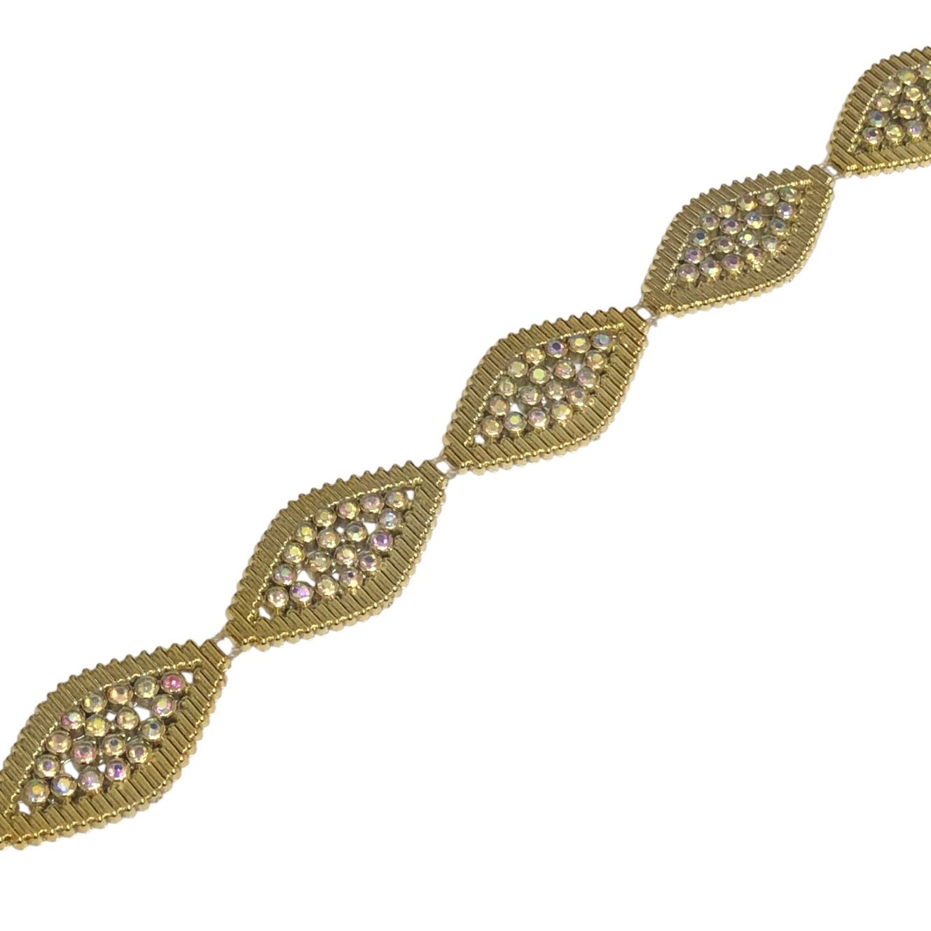 Galão Aljofre Losango 4x2cm C/Strass Abs Dourado – Metro