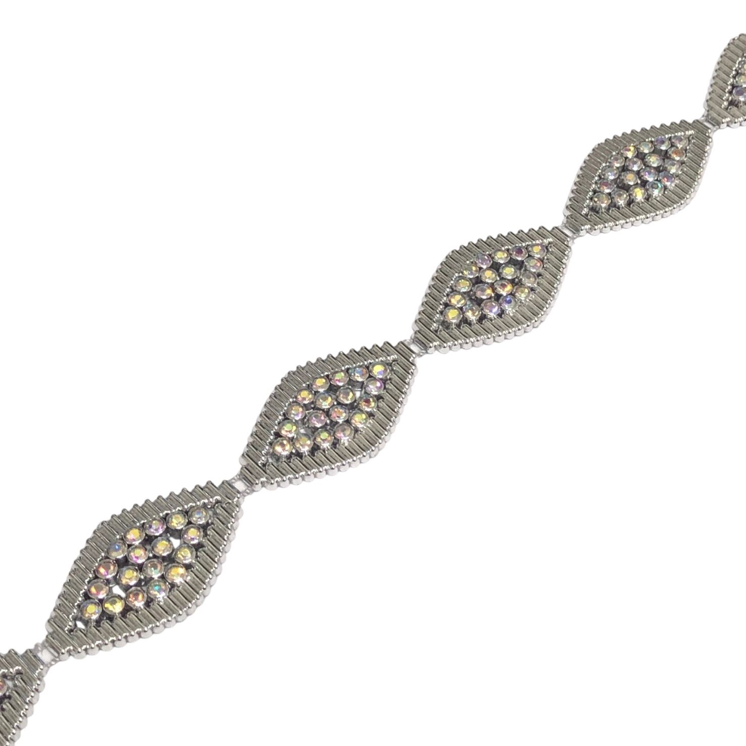 Galão Aljofre Losango 4x2cm C/Strass Abs Níquel – Metro