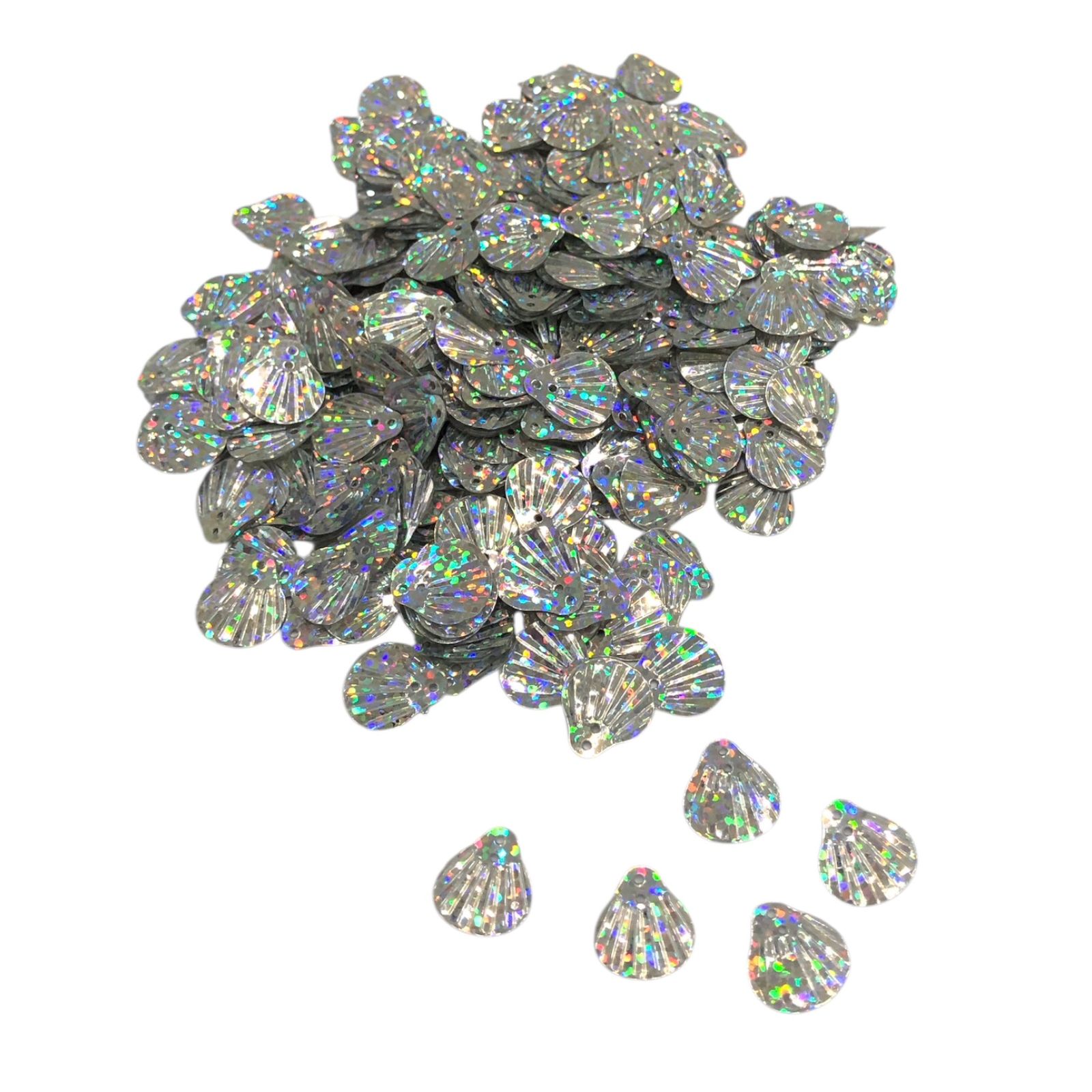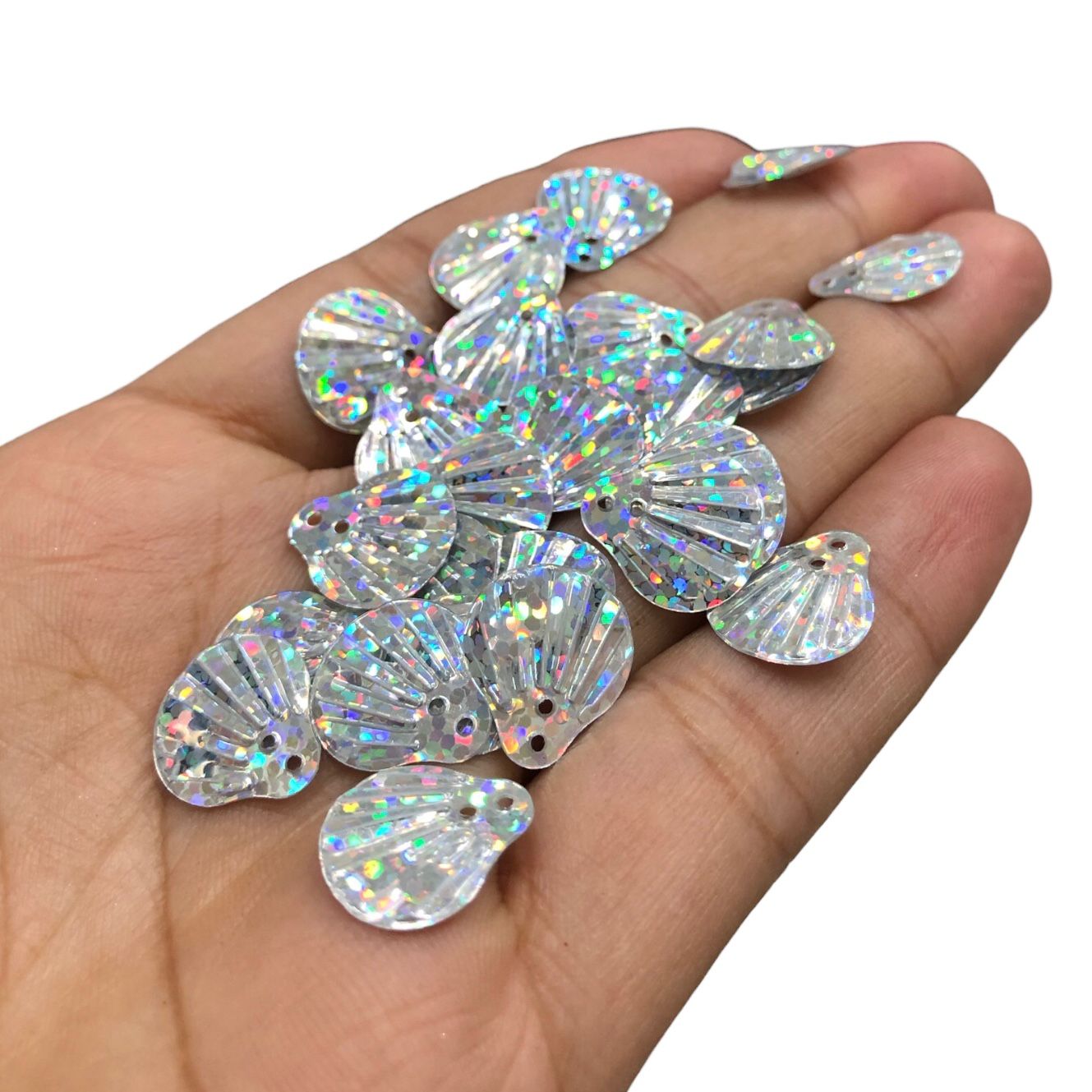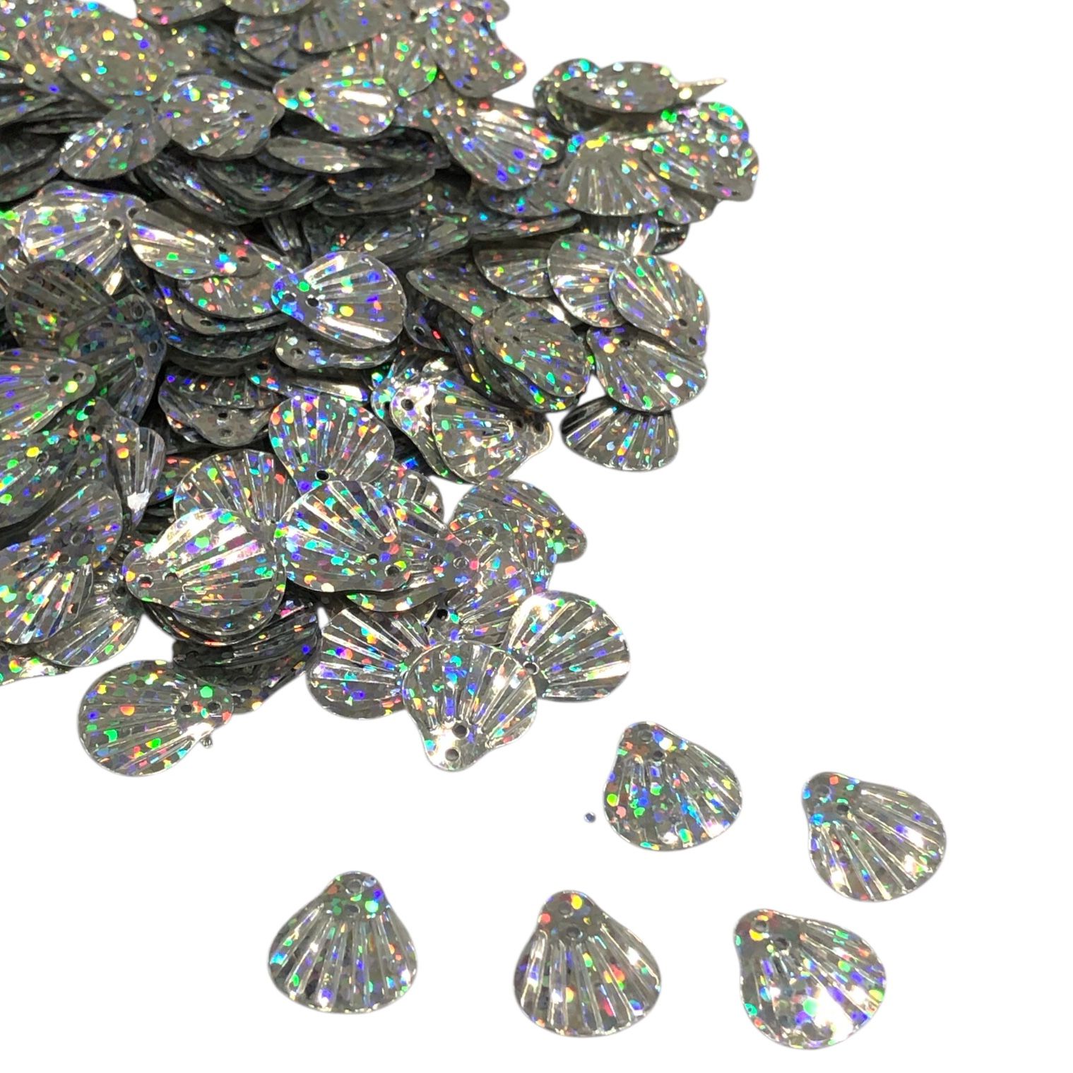 Paetê Pastilha Concha 14mm Prata Holográfico – 20 Gramas