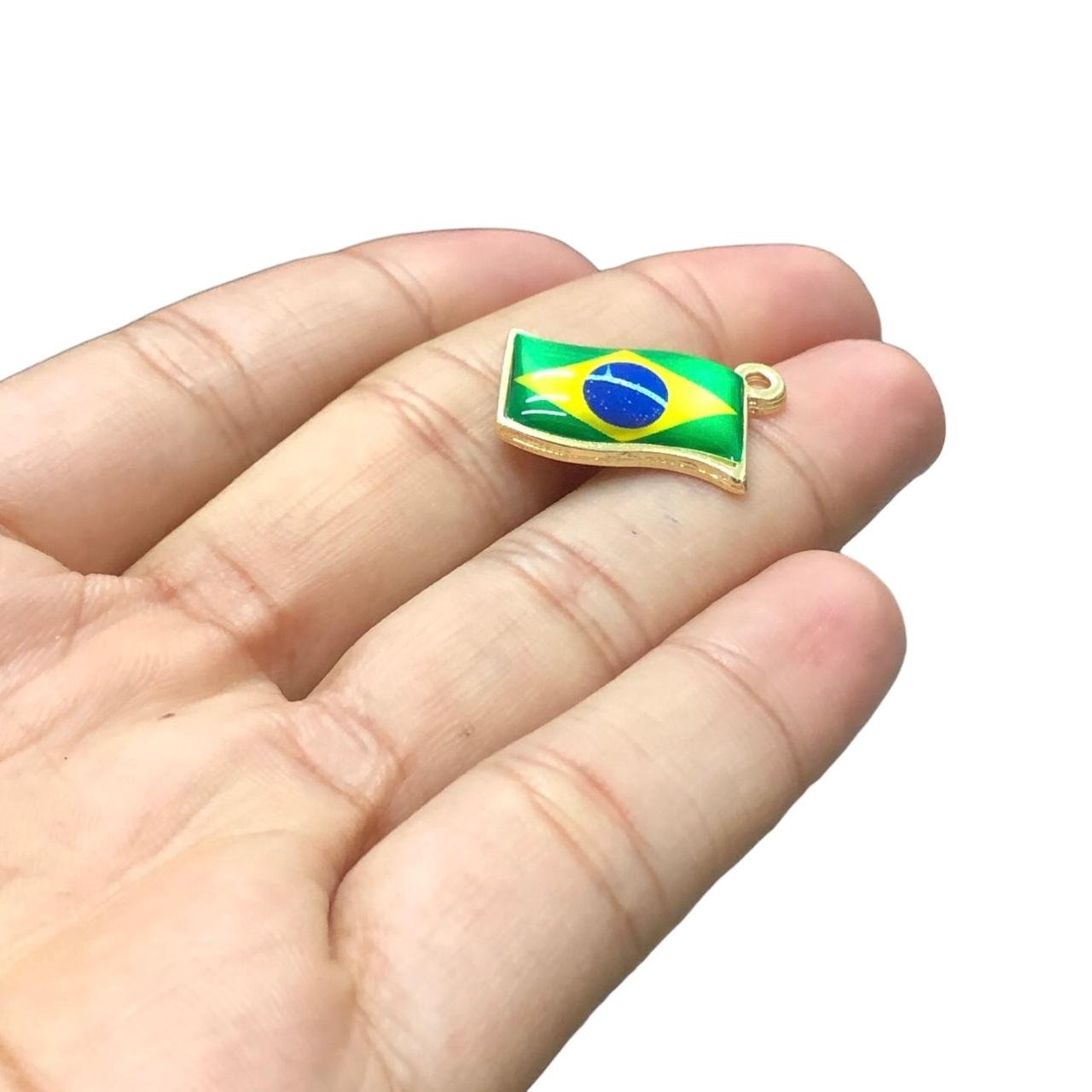 Pingente Bandeira Brasil 22mm C/ Resina Dourado – 1 Und