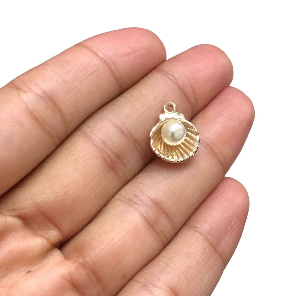 Pingente Concha C/ Pérola 15mm Dourado – 1 Und
