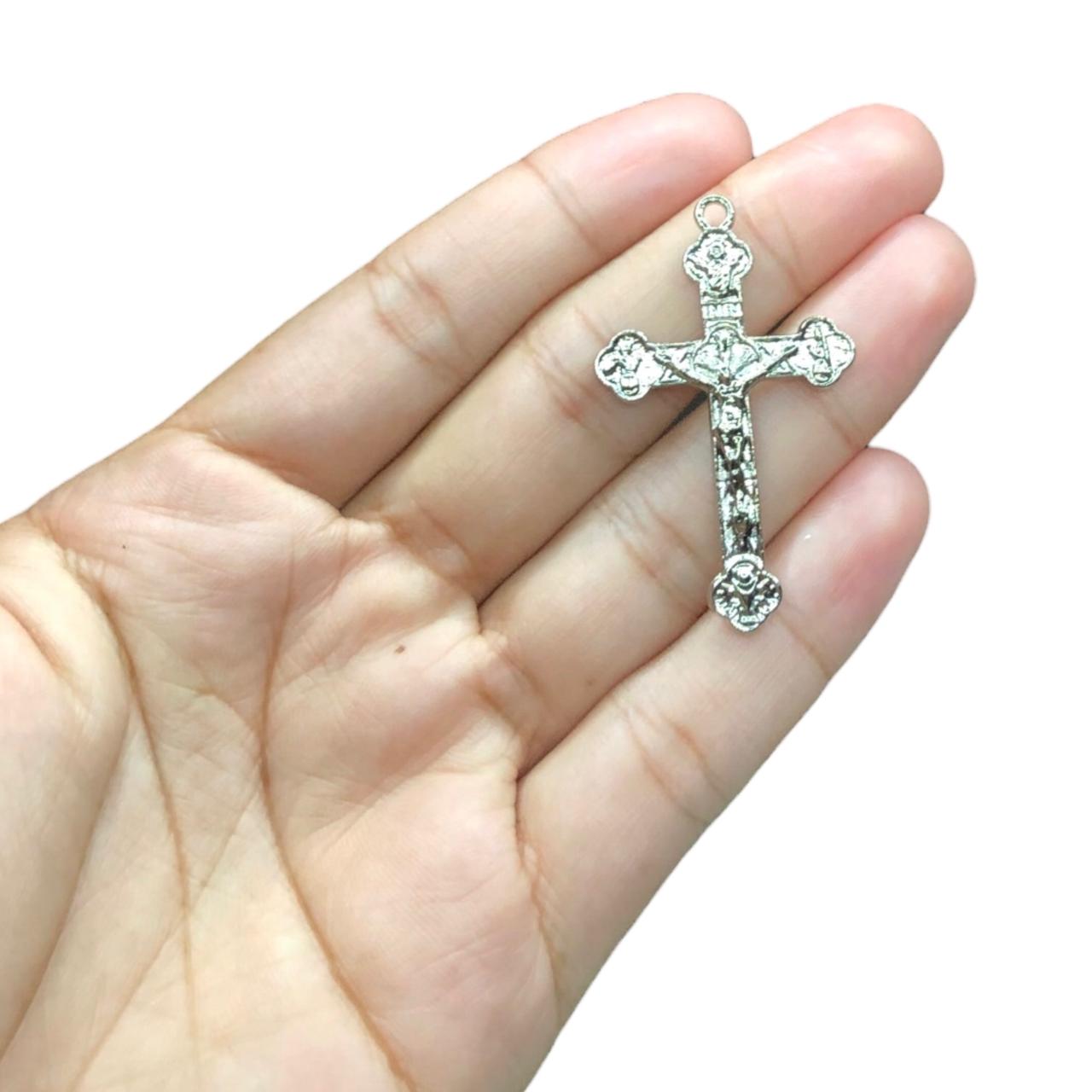 Pingente Cruz Trabalhado 46mm Níquel – 1 Und