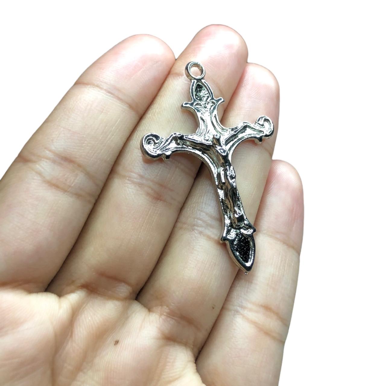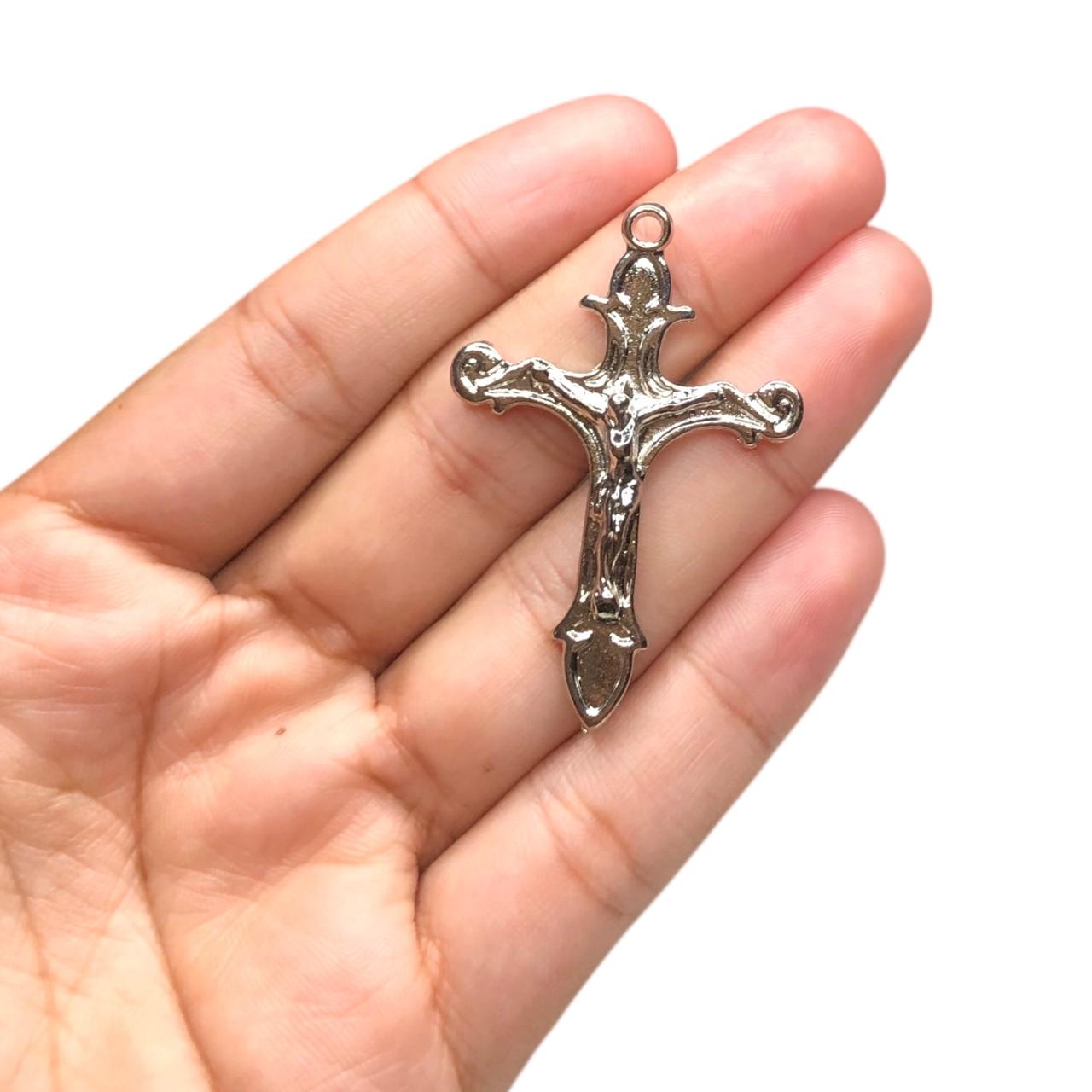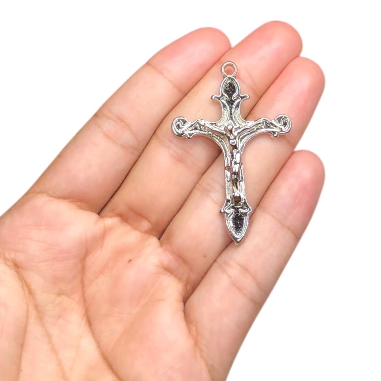 Pingente Cruz Trabalhado 49mm Níquel – 1 Und