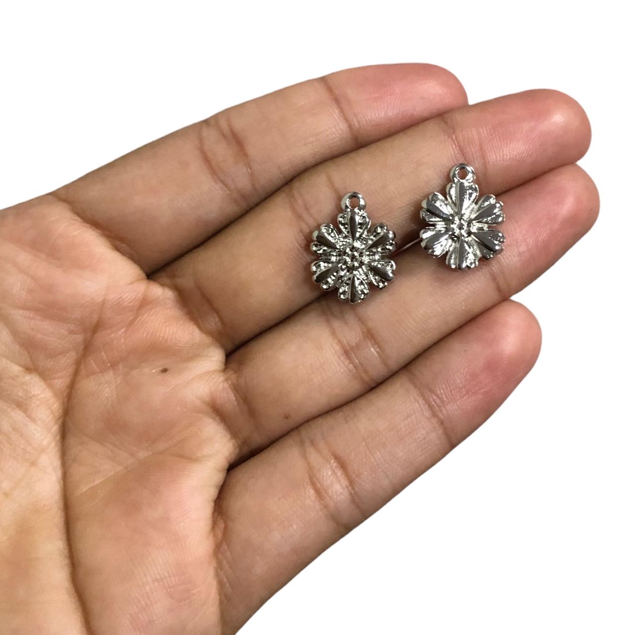 Pingente Flor 17mm Trabalhado Níquel – 1 Und