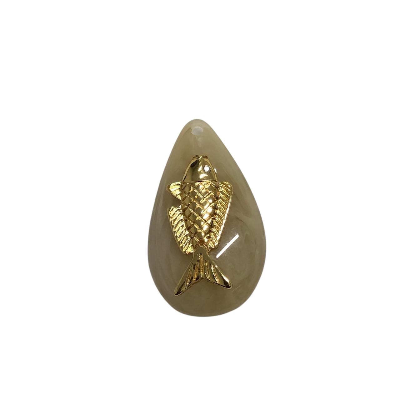 Pingente Gota C/ Peixe 35x60mm Dourado – 1 Und