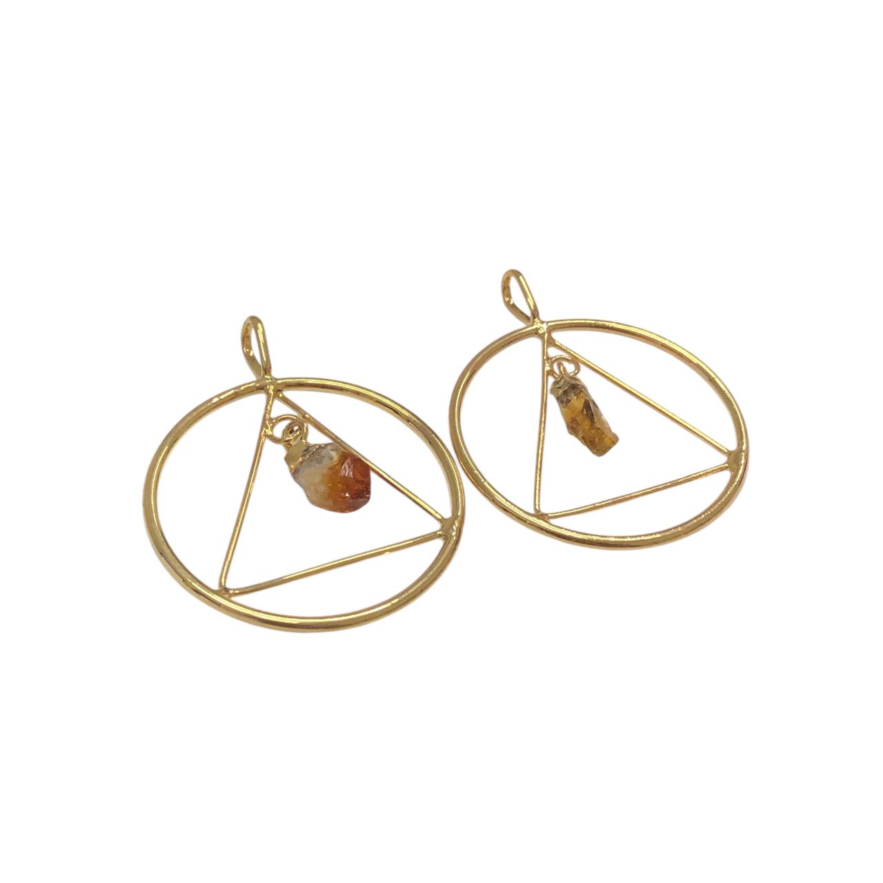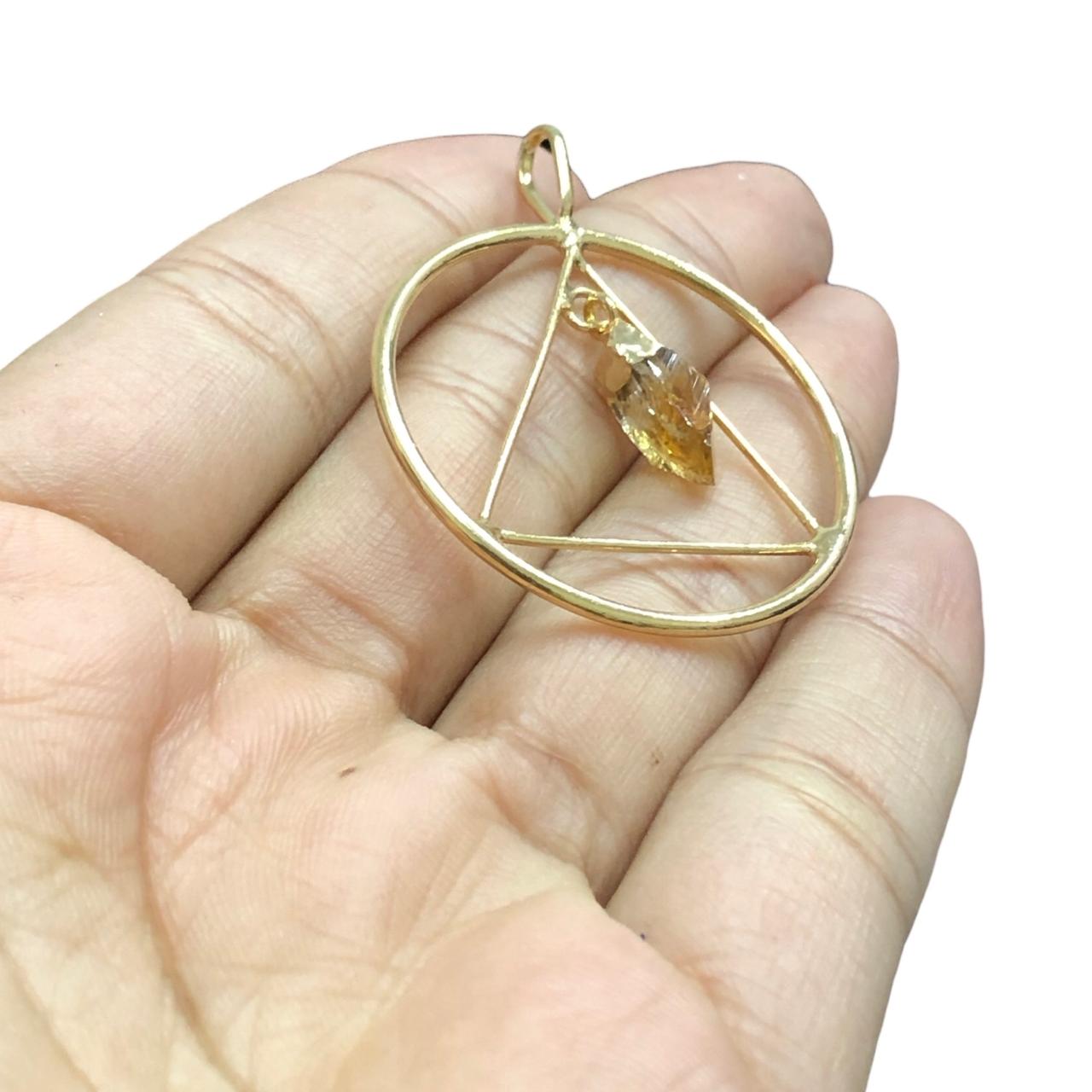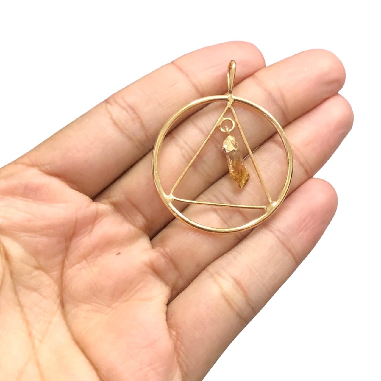 Pingente Pedra Redondo C/ Retângulo 24mm Dourado – 1 Und