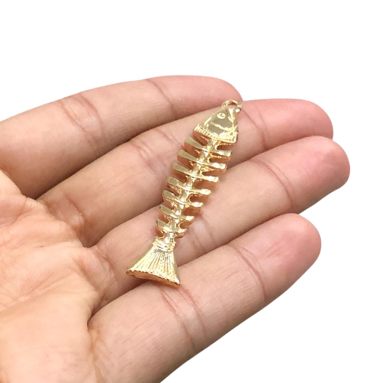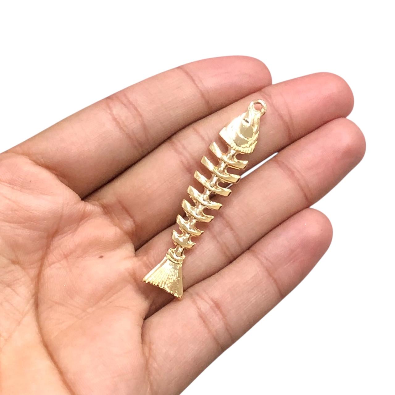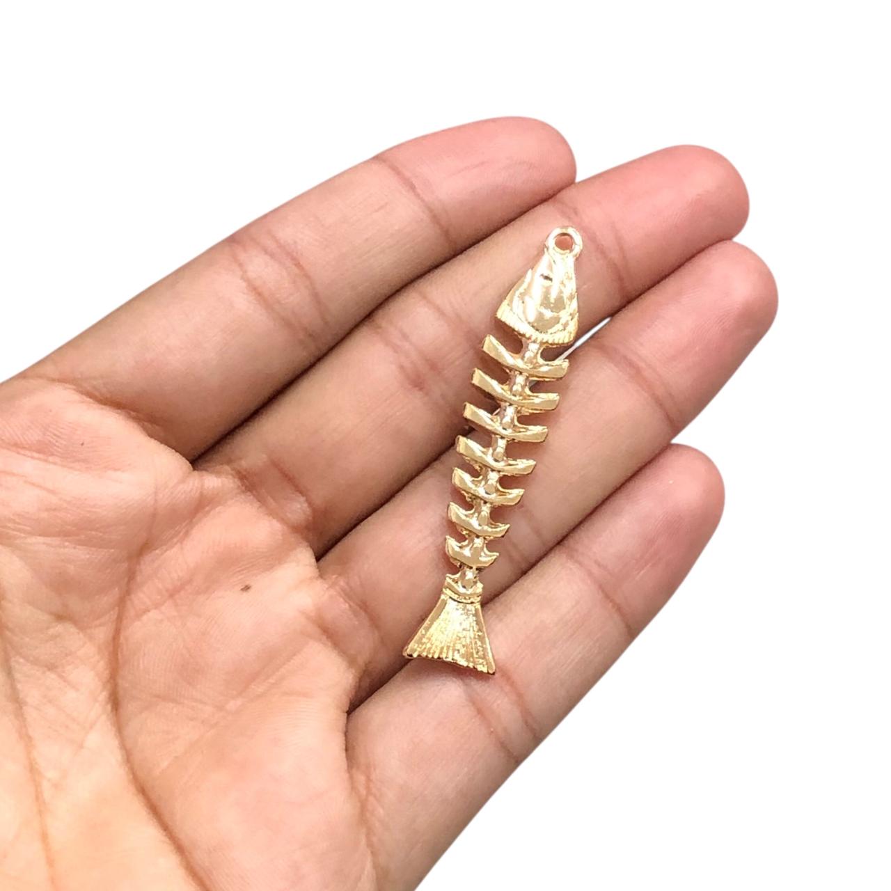 Pingente Peixe Espinha 50mm Dourado – 1 Und