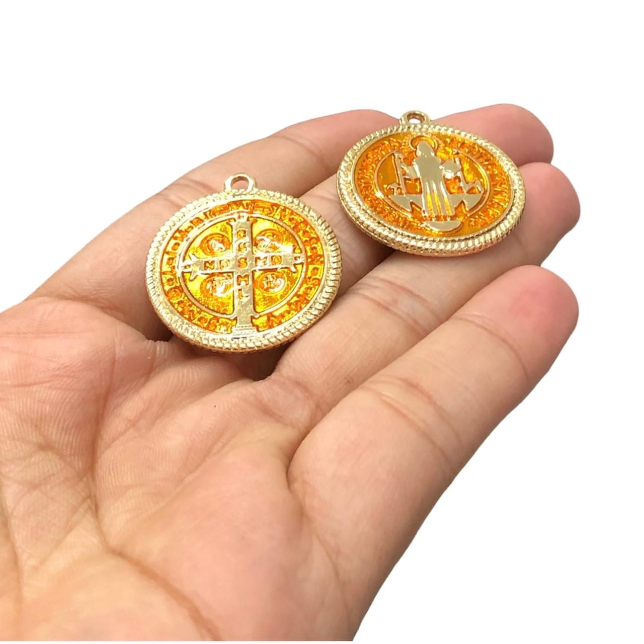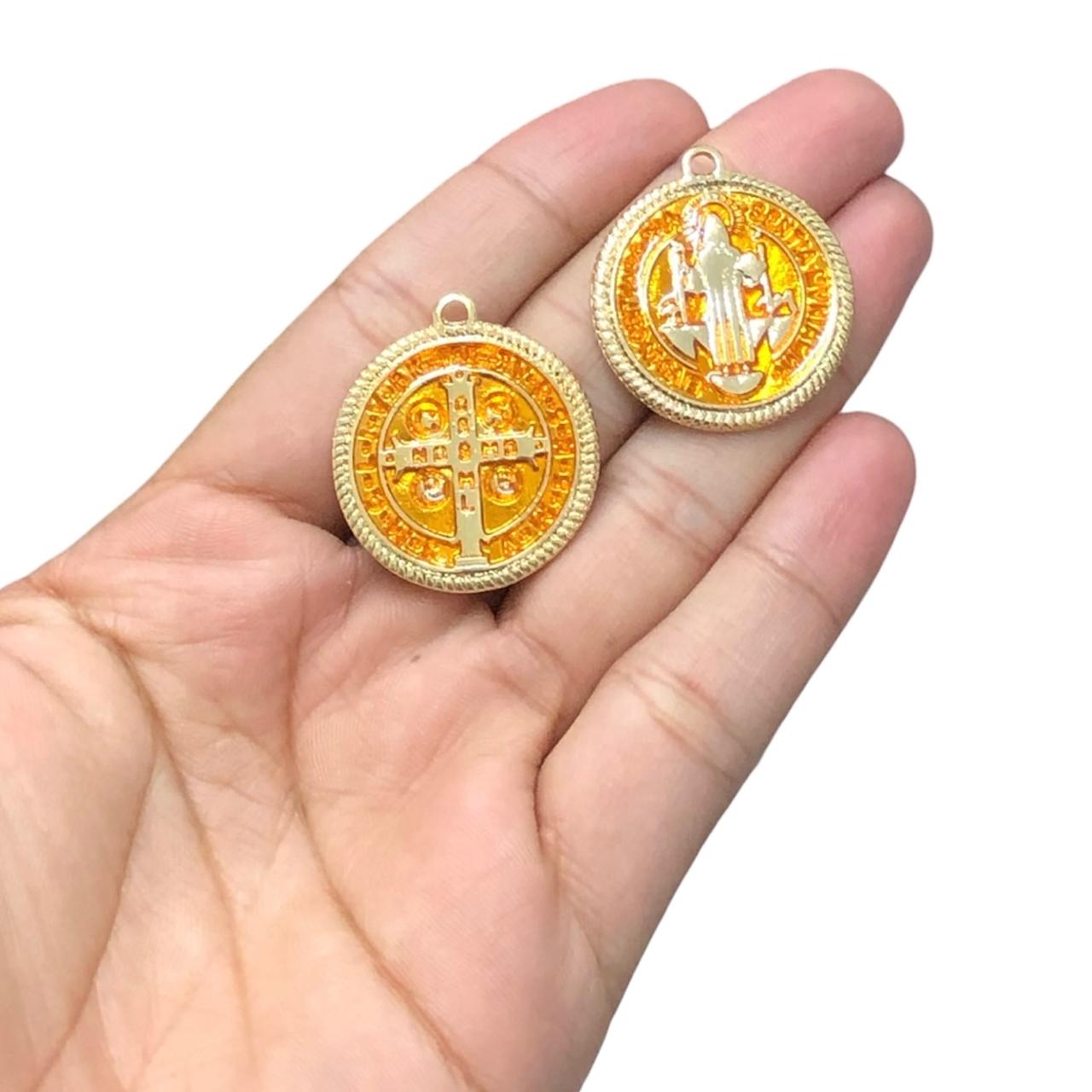 Pingente Redondo S.Bento C/ Resina 30mm Dourado – 1 Und